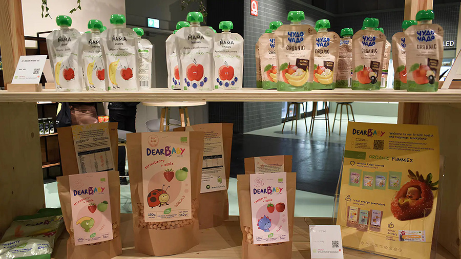 Вони представили широкий асортимент органічної сертифікованої продукції: заморожені ягоди, концентровані соки, молочну продукцію, каші та супи миттєвого приготування, пластівці, крупи, сублімовані ягоди, фрукти й овочеві снеки, горіхи, дитячі сухі сніданки, а також лінійку органічних снеків – чипси, грісіні та хлібці.